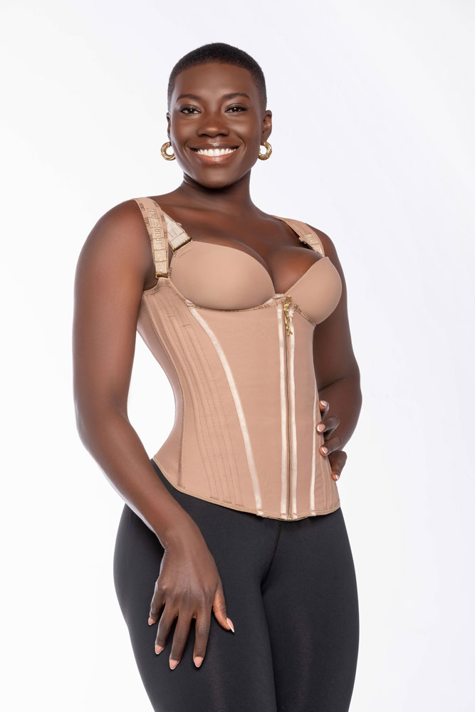 • Varillas metálicas: Da efecto de reloj de arena, define la cintura y derrier // metal rods: Gives hourglass effect, defines the waist and derrier